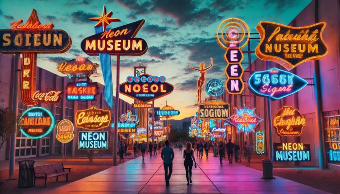 - An outdoor “boneyard” filled with iconic, retired Las Vegas neon signs.